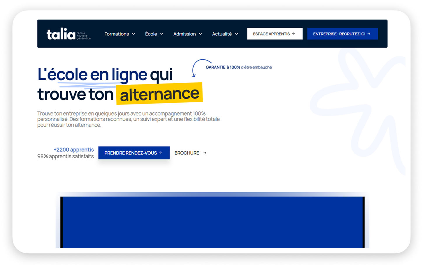 Talia operates as a comprehensive student portal for alternance (work-study) programs and online training. The platform manages the complete student lifecycle from enrollment through certification, coordinating between educational institutions, employers, and students in France's dual education system.